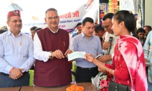 कैबिनेट मंत्री गणेश जोशी ने आपदा प्रभावित दुकानदारों को दिए सहायता राशि के चैक