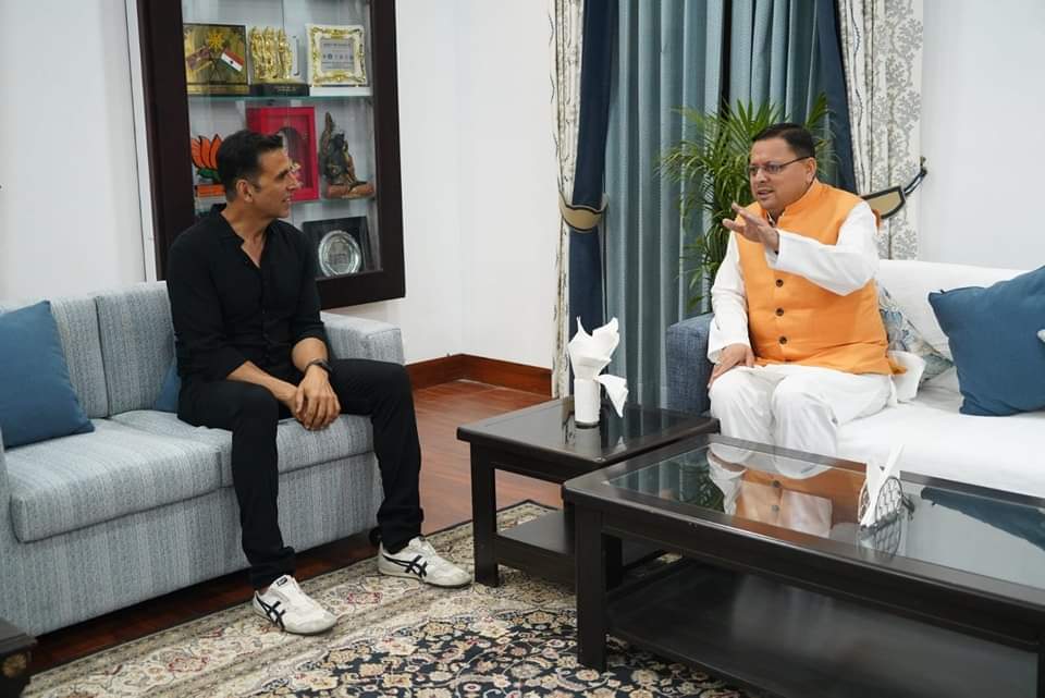 मुख्यमंत्री पुष्कर सिंह धामी से मंगलवार को मुख्यमंत्री आवास में प्रसिद्ध फ़िल्म अभिनेता श्री अक्षय कुमार ने मुलाकात की। मुलाकात के दौरान मुख्यमंत्री पुष्कर सिंह धामी एवं अभिनेता अक्षय कुमार के बीच उत्तराखंड को नए फिल्म इंडस्ट्री हब के रूप में विकसित किए जाने पर चर्चा हुई। मुख्यमंत्री पुष्कर सिंह धामी ने कहा कि उत्तराखंड राज्य दिन प्रतिदिन फिल्म इंडस्ट्री के लिए एक नए शूटिंग डेस्टिनेशन के रूप में उभर रहा है।