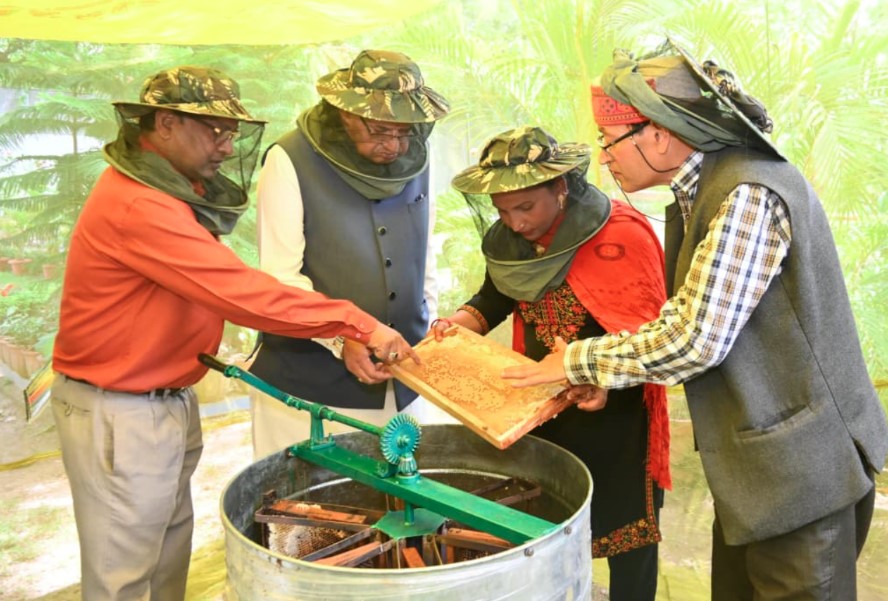 देहरादून। प्रदेश के कृषि एवं कृषक कल्याण मंत्री गणेश जोशी ने अपने शासकीय आवास में शहद उत्पादन के लिए स्थापित किए गए मधुमक्खी के बक्सों से शहद निकाला। उन्होंने जानकारी दी कि 30 बक्सों से लगभग 60 किलोग्राम शहद निकाला गया। उन्होंने इस कार्य के तकनीकी विशेषज्ञों से शहद उत्पादन की प्रक्रिया के बारे में भी जानकारी प्राप्त की।