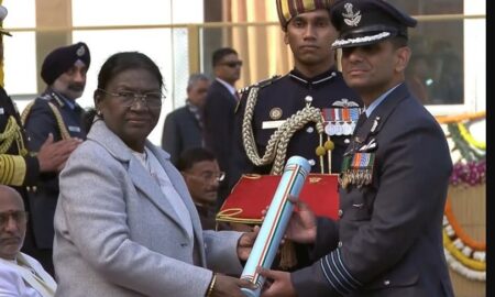 गणतंत्र दिवस के अवसर पर राष्ट्रपति द्रौपदी मुर्मू ने किया सम्मानित नई दिल्ली। गणतंत्र दिवस के अवसर पर भारतीय वायुसेना के ग्रुप कैप्टन...