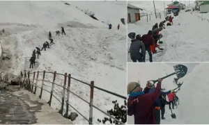 केदारनाथ पैदल मार्ग पर बर्फ हटाने के कार्य में जुटे मजदूरों ने हेलीपैड तक बर्फ हटाने का कार्य पूरा कर लिया है....