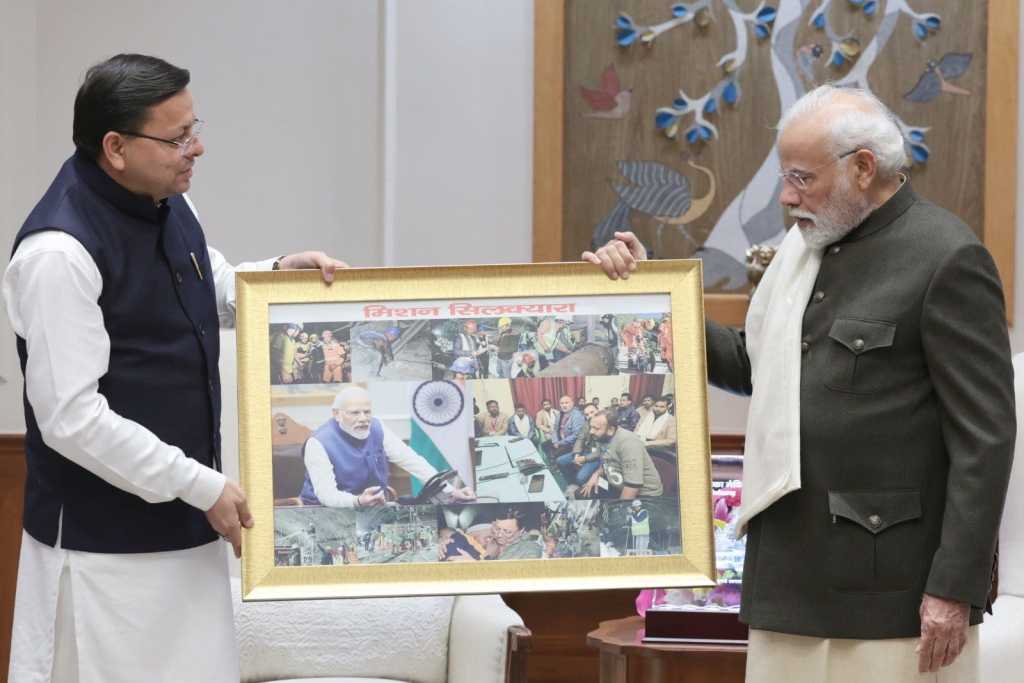 मुख्यमंत्री पुष्कर सिंह धामी दिल्ली दौरे पर हैं। मुख्यमंत्री धामी ने आज पीएम मोदी से मुलाकात की। इस दौरान पीएम मोदी ने सीएम पुष्कर सिंह धामी को उत्तरकाशी रेस्क्यू ऑपरेशन की सफलता की बधाई दी। पीएम मोदी ने जमकर सीएम धामी की पीठ थपथपाई। इस दौरान मुख्यमंत्री धामी ने उत्तरकाशी रेस्क्यू ऑपरेशन की सफलता की तस्वीर भेंट की। साथ ही मुख्यमंत्री धामी ने पीएम मोदी को उत्तराखंड में आयोजित होने वाले इन्वेस्टर्स समिट में आने का न्यौता भी दिया। जिस पर पीएम मोदी ने हामी भरी है। इसके बाद दोनों नेताओं के बीच काफी देर बातचीत हुई।
