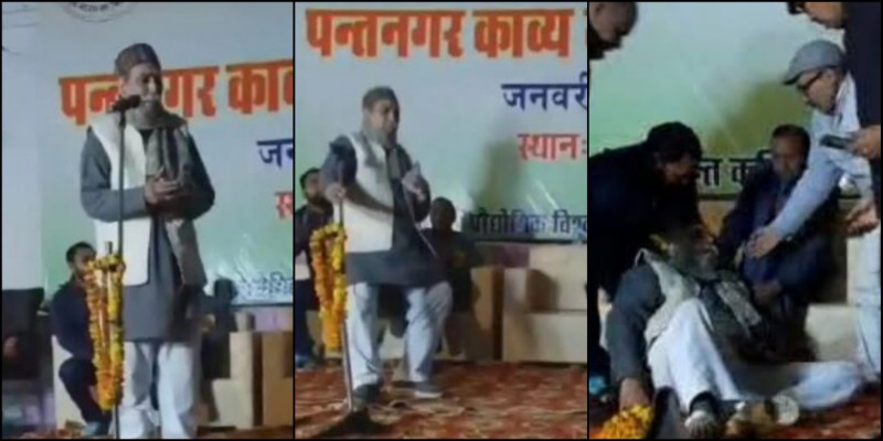 उधमसिंहनगर जनपद के पंतनगर क्षेत्र से एक हैरान करने वाला वीडियो सामने आया है। पंतनगर में आयोजित पंतनगर काव्य महोत्सव के दौरान कविता पाठ करते हुए कवि को हार्टअटैक आ गया और वह स्टेज पर गिर पड़े जिससे उसके मौत हो गई, कवि की मौत के बाद परिजन उसके शव को मथुरा उत्तर प्रदेश ले गए वहां उसकी विधि विधान से अंतिम संस्कार किया गया है। वही इस पूरे घटना की वीडियो सोशल मीडिया में अब जमकर वायरल हो रही है।