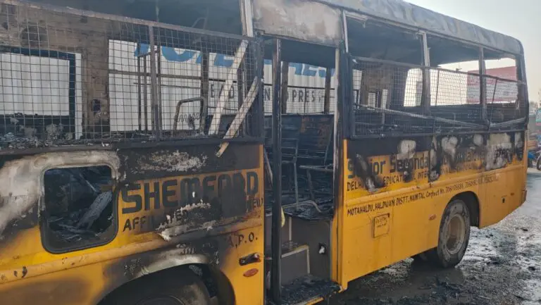 मोटाहल्दु में बड़ा हादसा होने से टला, स्कूल बस में लगी आग, बस हुई राखहल्द्वानी – बच्चों को लेकर स्कूल जा रही शैंम्फोर्ड सीनियर सेकेंडरी स्कूल की बस में अचानक मोटाहल्दु में आग लग गई बस में अचानक धुआं देखा ड्राइवर ने तत्परता दिखाकर बस को रोका और आसपास स्थानीय लोगों की मदद से सभी बच्चों को सुरक्षित बस से बाहर निकाल लिया गया। इस बीच आग ने भयंकर रूप ले लिया मौके पर पहुंची दमकल की गाड़ी द्वारा आग बुझाया गया। तब तक बस जलकर पूरी तरह राख हो गई , फिलहाल बस में आग कैसे लगी इसके पुष्ट कारणों का पता नहीं चल पाया है।