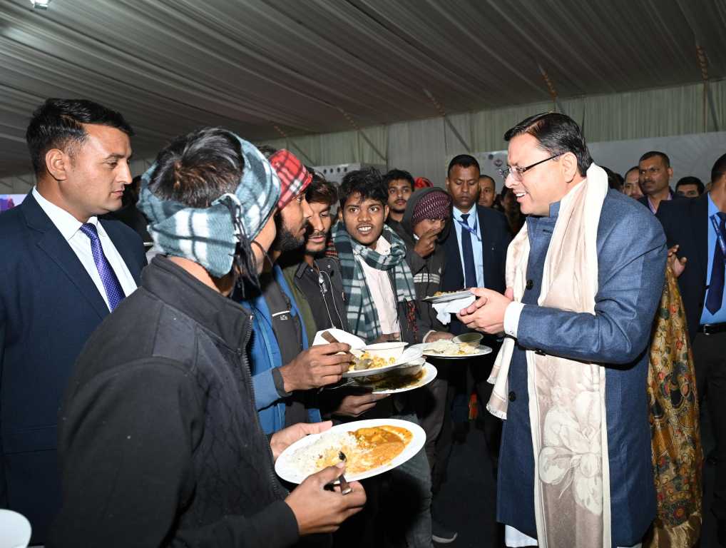 मुख्यमंत्री पुष्कर सिंह धामी ने रविवार को एफ.आर.आई. में सूचना एवं लोक सम्पर्क विभाग द्वारा प्रकाशित विकास पुस्तिका विमोचन के पश्चात पिछले एक सप्ताह से ग्लोबल इंवेस्टर्स समिट की व्यवस्थाओं से जुड़े श्रमिकों एवं पर्यावरण मित्रों के साथ भोजन कर उनके अथक परिश्रम की सराहना कर धन्यवाद दिया। मुख्यमंत्री ने कहा कि इस महत्वपूर्ण आयोजन की सफलता में हमारे श्रमिक भाइयों का विशेष योगदान रहा है, उनके श्रम की जितनी प्रशंसा की जाए कम है।